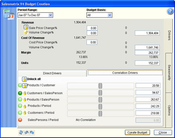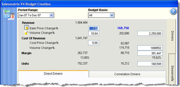 Clicking on the Budget Toolbar Icon will present the budget