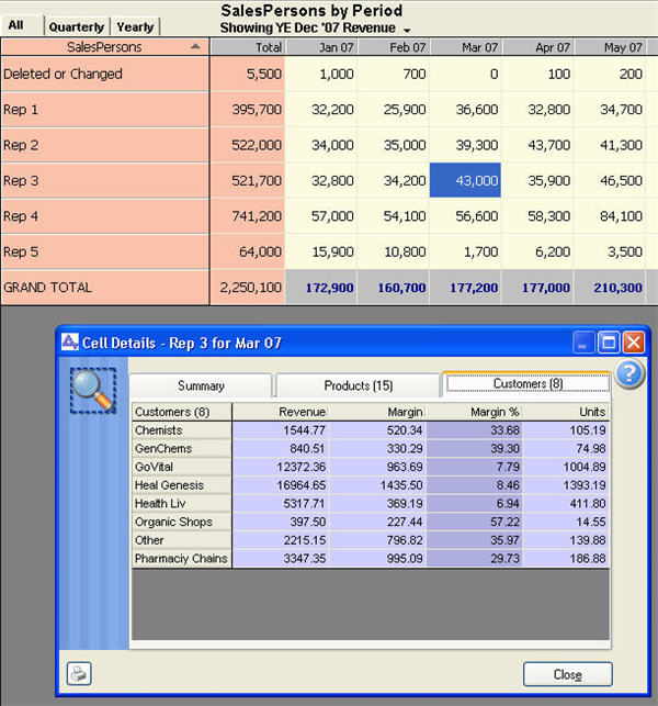 results - for example the customer and product mix for a