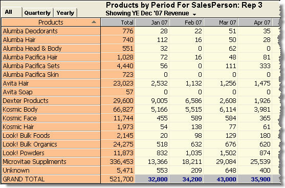 or how many Product types are sold each period? The