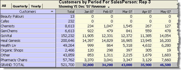 many Customers does a salesperson sell to each month